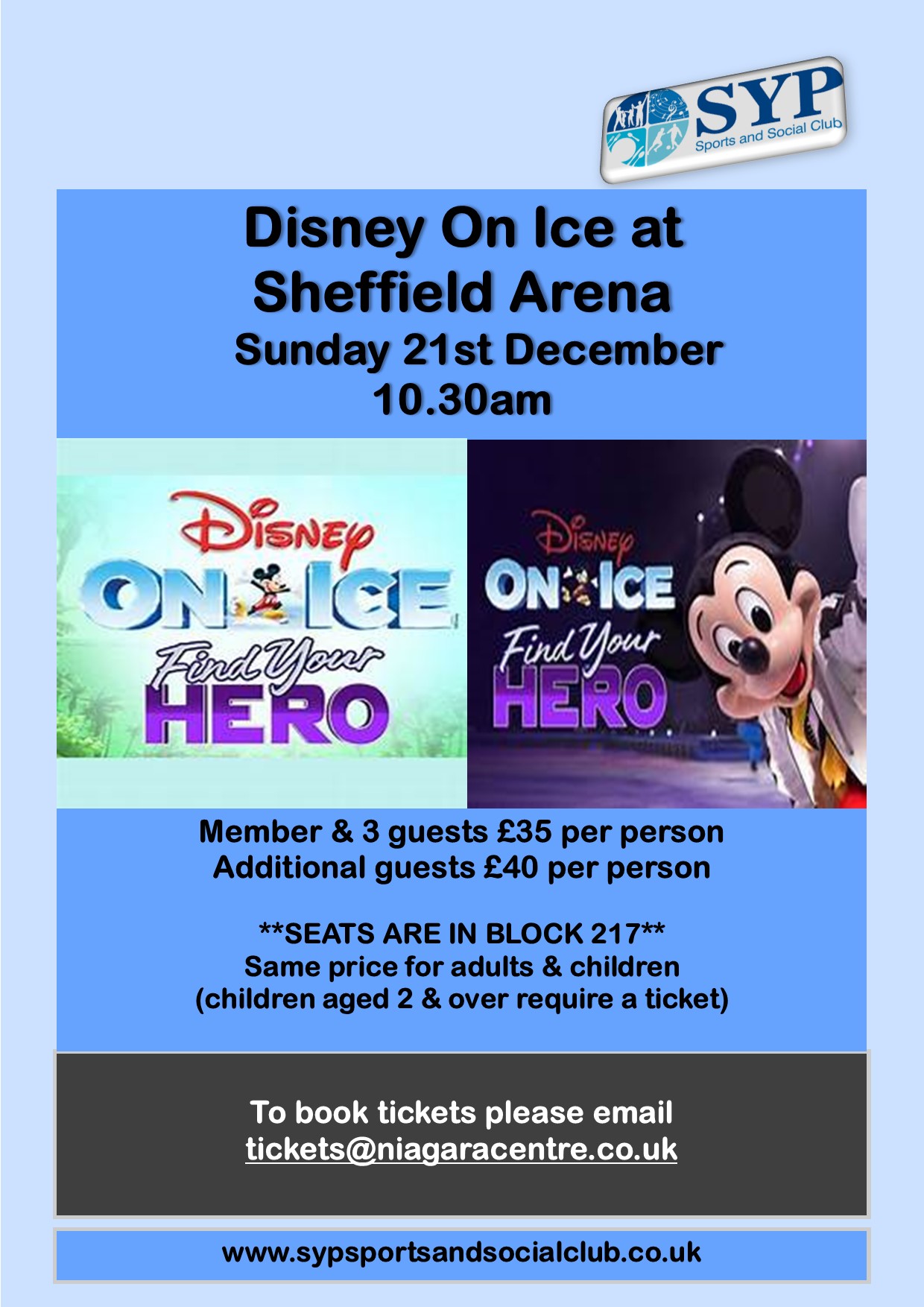 We now have 2 tickets available for Disney On Ice on Sunday 21st December at 10:30am. They are £35 each. Children under 2 can be added for free if they sit on your lap.