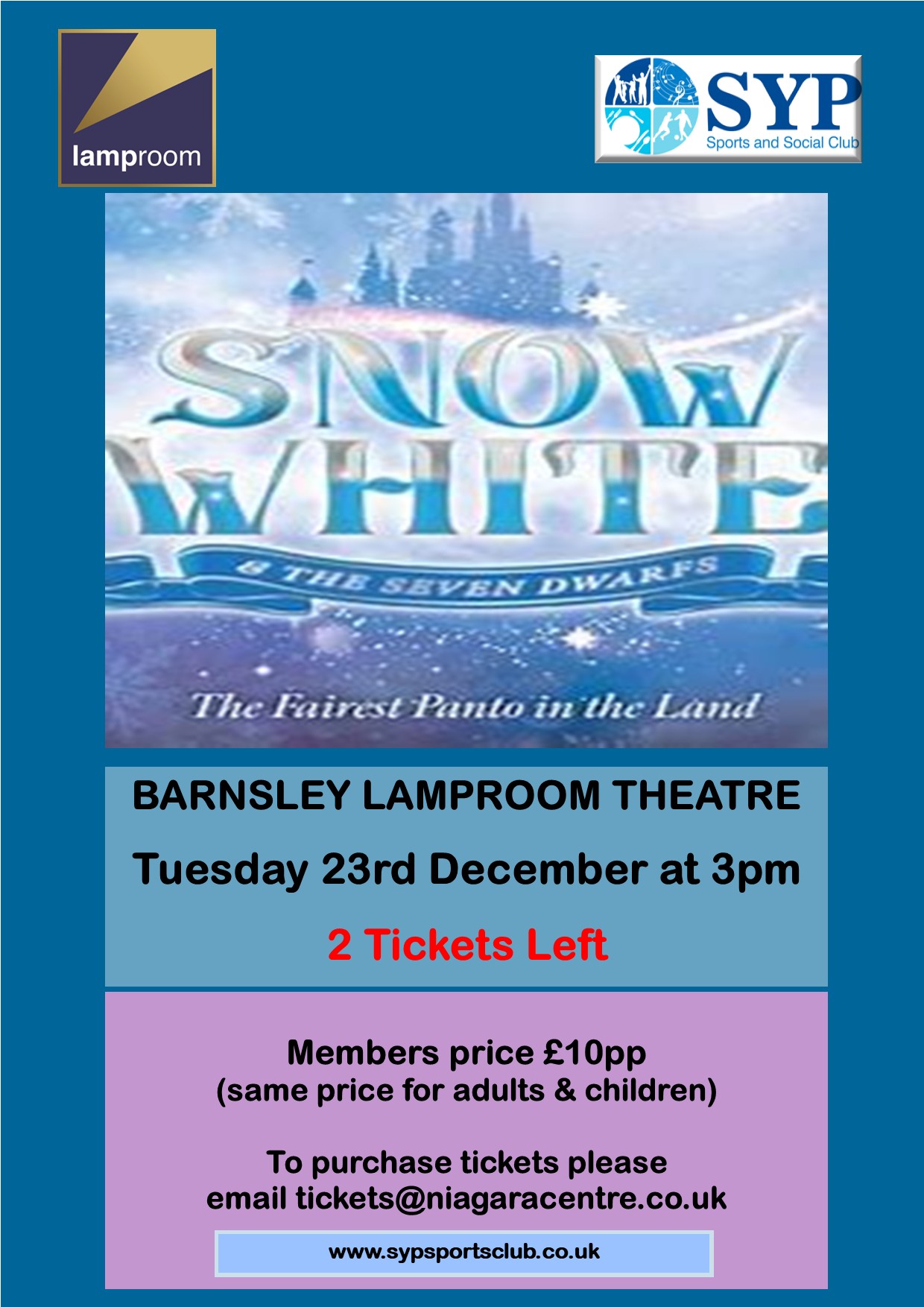 We have 2 tickets available for Barnsley Pantomime on Tuesday 23rd December at 3pm.